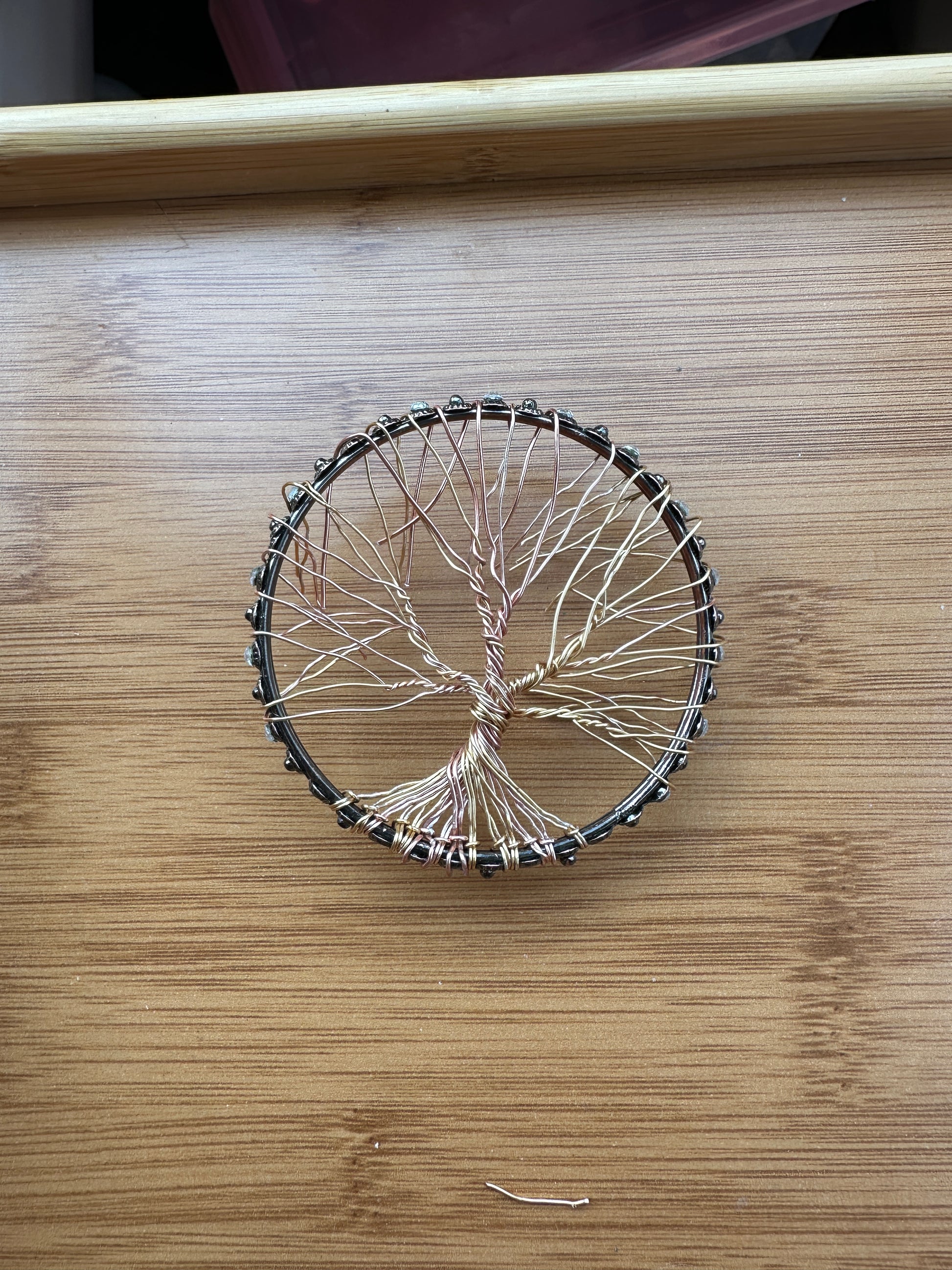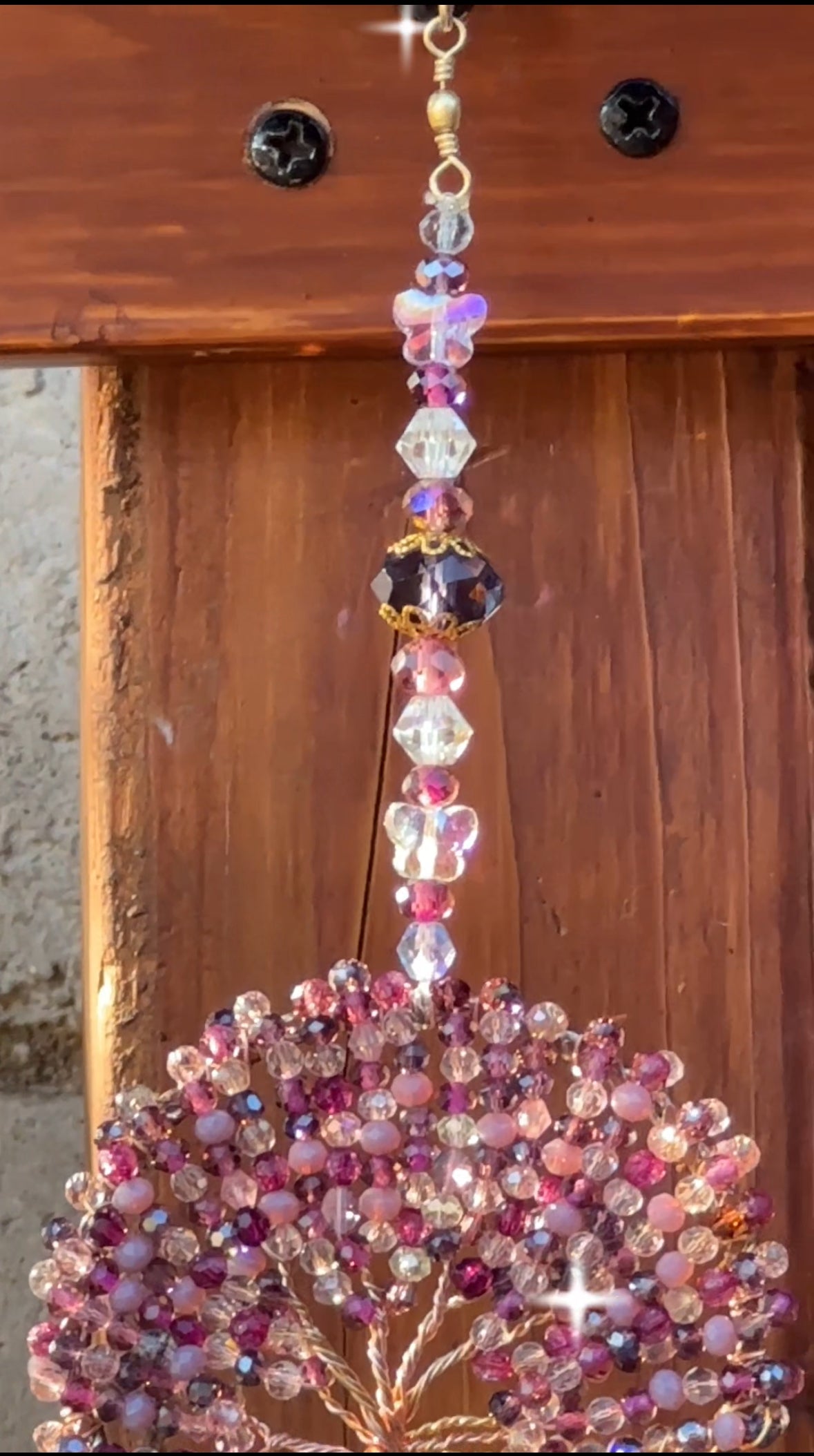 Butterfly Kisses begins as a bracelet, hand-wired into a Tree of Life design in rich amethyst and plum hues. Adorned with sparkling crystal butterflies, this piece celebrates transformation, resilience, and the beauty of gentle change. Each branch and butterfly is carefully placed by hand, making it truly one-of-a-kind.