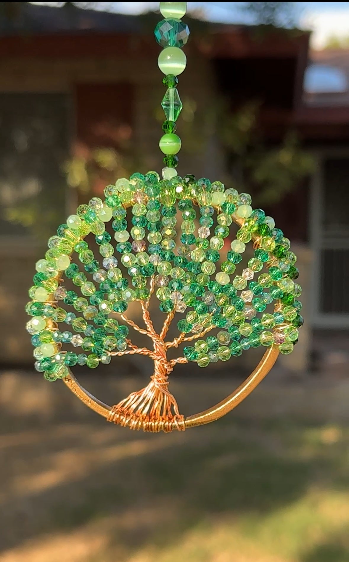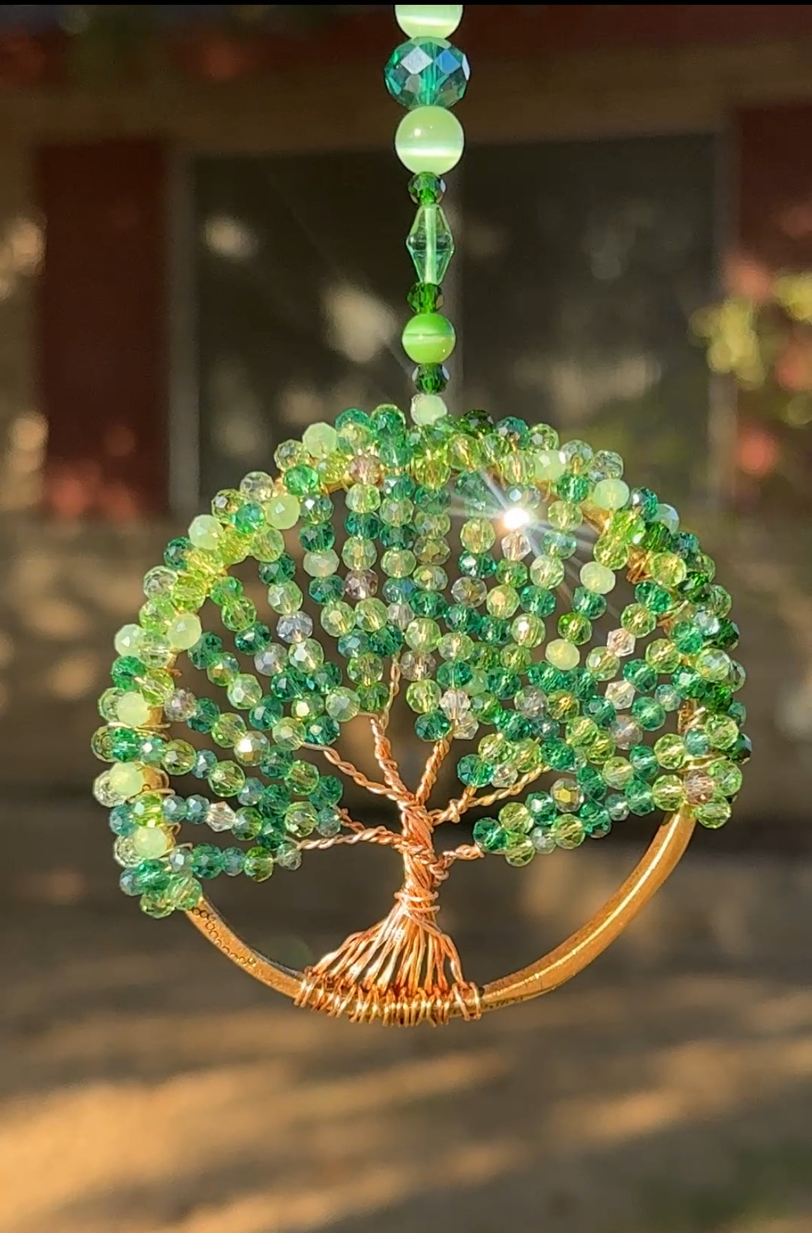 Every jewel is carefully placed by hand, creating a canopy of light-catching leaves that shimmer with every shift of the sun. The tree’s copper roots represent grounding and balance, while the lush green symbolizes prosperity, healing, and fresh beginnings.