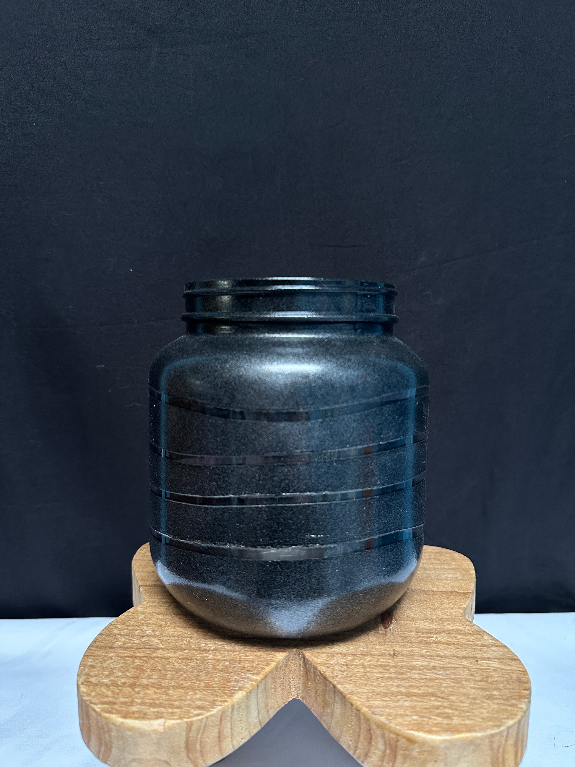 Pot dimensions/material: 4” w , 6” depth, Pickle Jar spray painted by Christine.