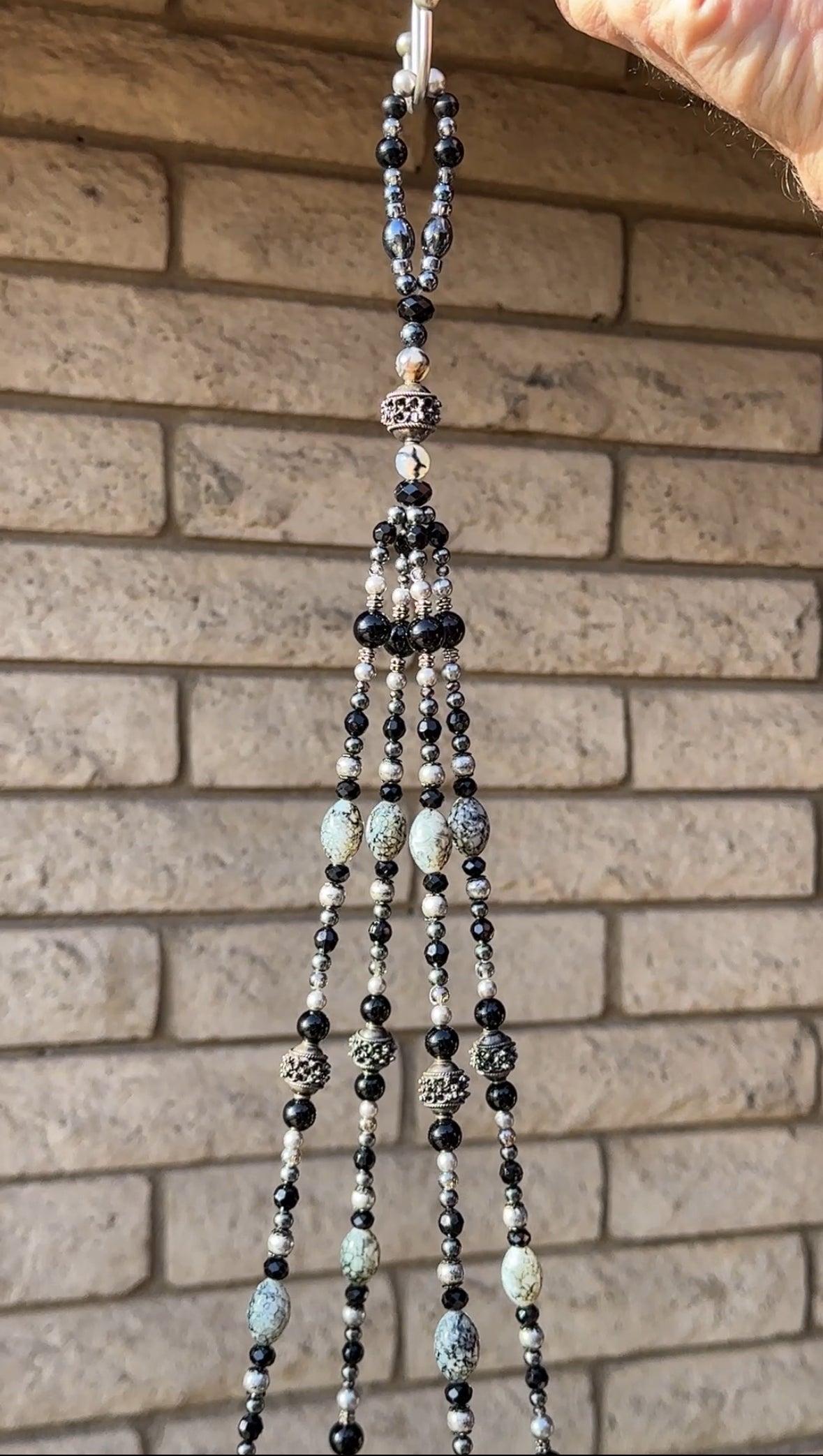 Materials: Black Onyx, marble stones, metal, acrylic and ceramic beads, glass, crystal, and more.