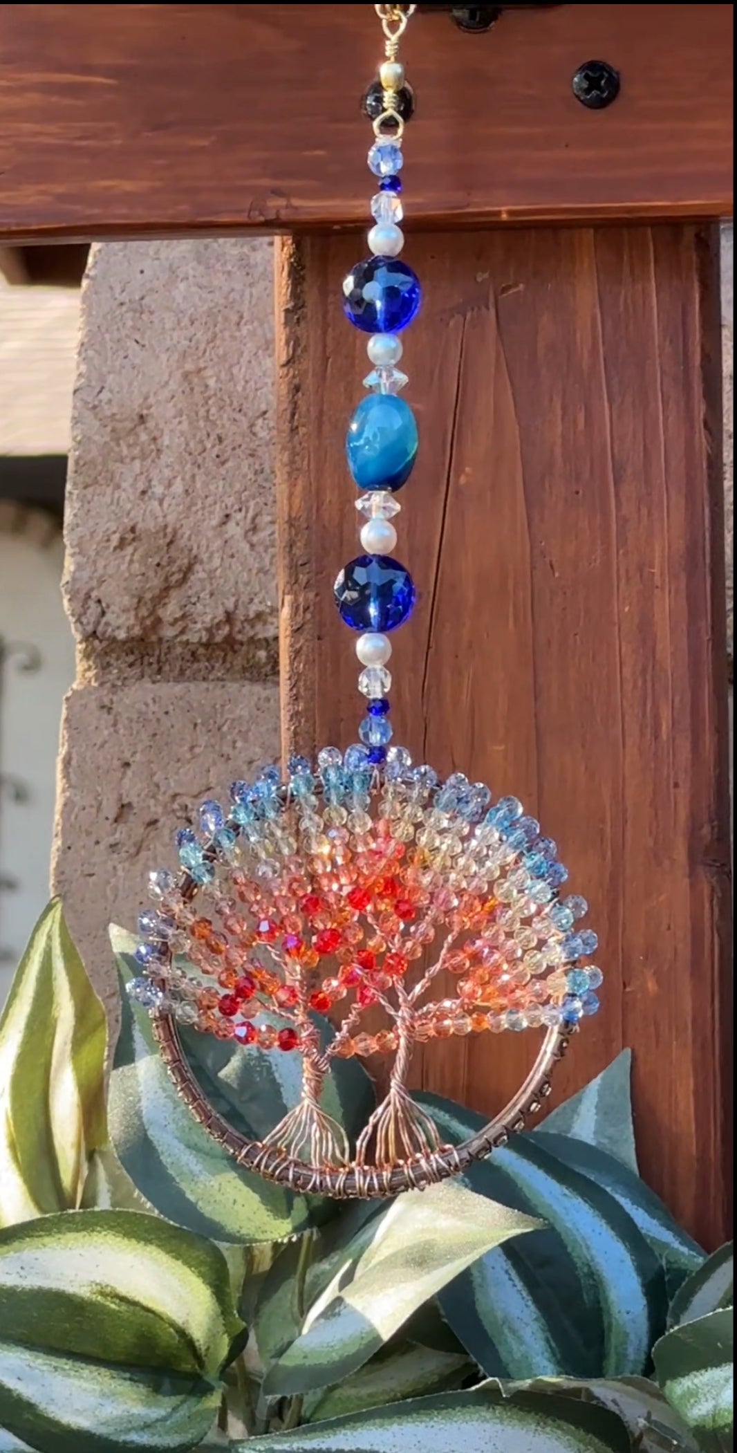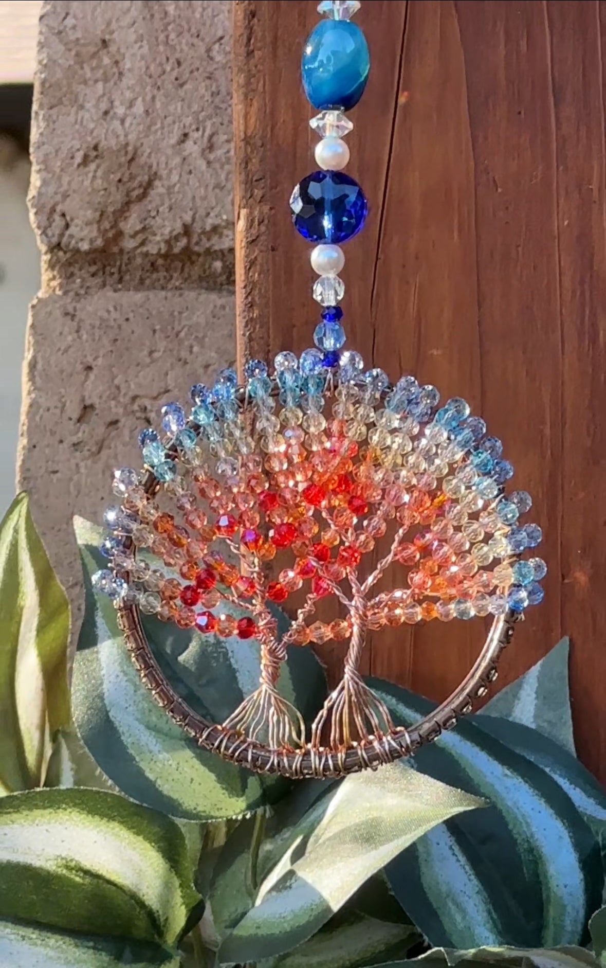 Meet Sunny. She begins with a repurposed bracelet, hand-wired into a double Tree of Life design. The blended trees representing unity, hope, and transformation.