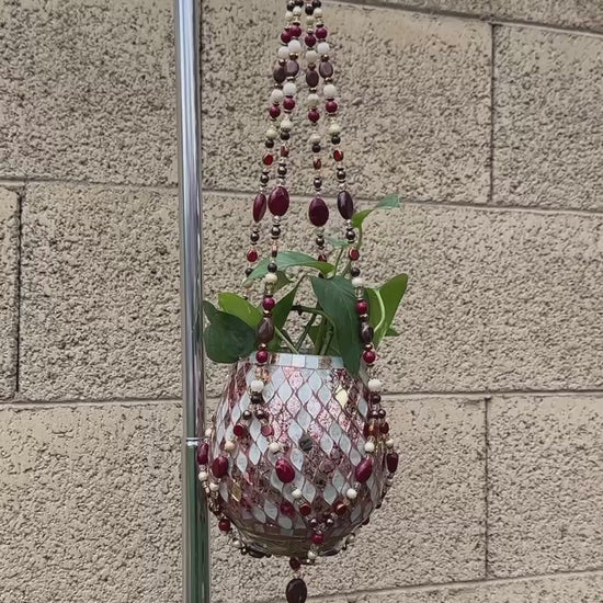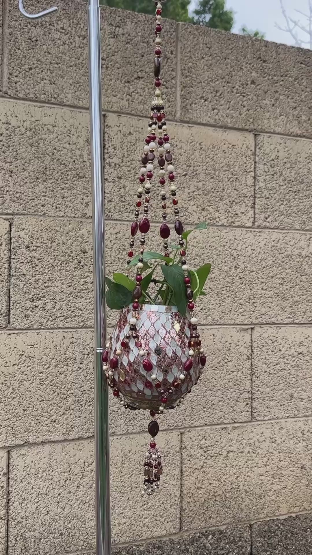 This Handmade beaded plant hanger can be hung from a ceiling hook, wall mount, or on a curtain rod right in your window.